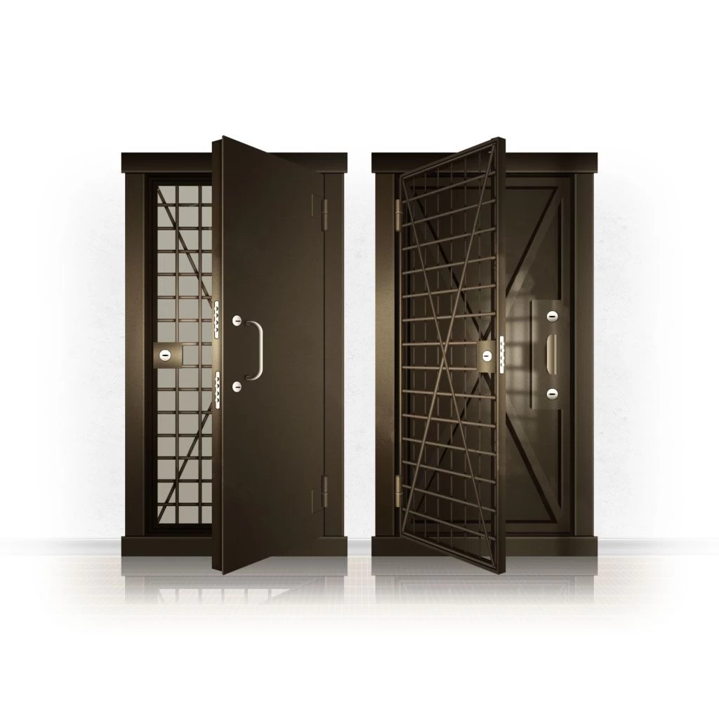 Металлические двери КХО и КХН представляют собой входные блоки, обладающие высоким уровнем взломостойкости и состоят из трех основных элементов: усиленного каркаса, сплошного металлического полотна и решетчатой двери. Дверной блок изготавливается из стального уголка 100*100 мм. Места крепления блока к стене цементируются и закрываются стальными наличниками шириной 40 мм. Крепеж заходит вглубь стены на 80 мм. В конструкции внешней створки монтируются ребра жесткости, для обшивки используется сталь толщиной не менее 3 мм. Внутренняя решетка изготавливается из прутка диаметром 16 мм. Размер ячеек решетки должен составлять не более 15 на 15 см. В точках пересечения прутья надежно приваривают друг к другу. В КХО и КХН необходимо поддерживать определенную температуру и влажность. Для этого внутреннее пространство глухой двери заполняется теплоизоляционным материалом, а по периметру двери приклеивается уплотнитель. Такие двери оборудуются замками с повышенным уровнем взломостойкости. Специализированные двери КХО и КХН в Юрьевеце могут быть оснащены сигнализацией, в конструкции могут быть проушины для навесного замка и элементами для опечатывания. Если идет речь о двери в комнату хранения оружия, в створке оборудуется окно для выдачи оружия и спец. средств, которое накрывается стальной дверцей.